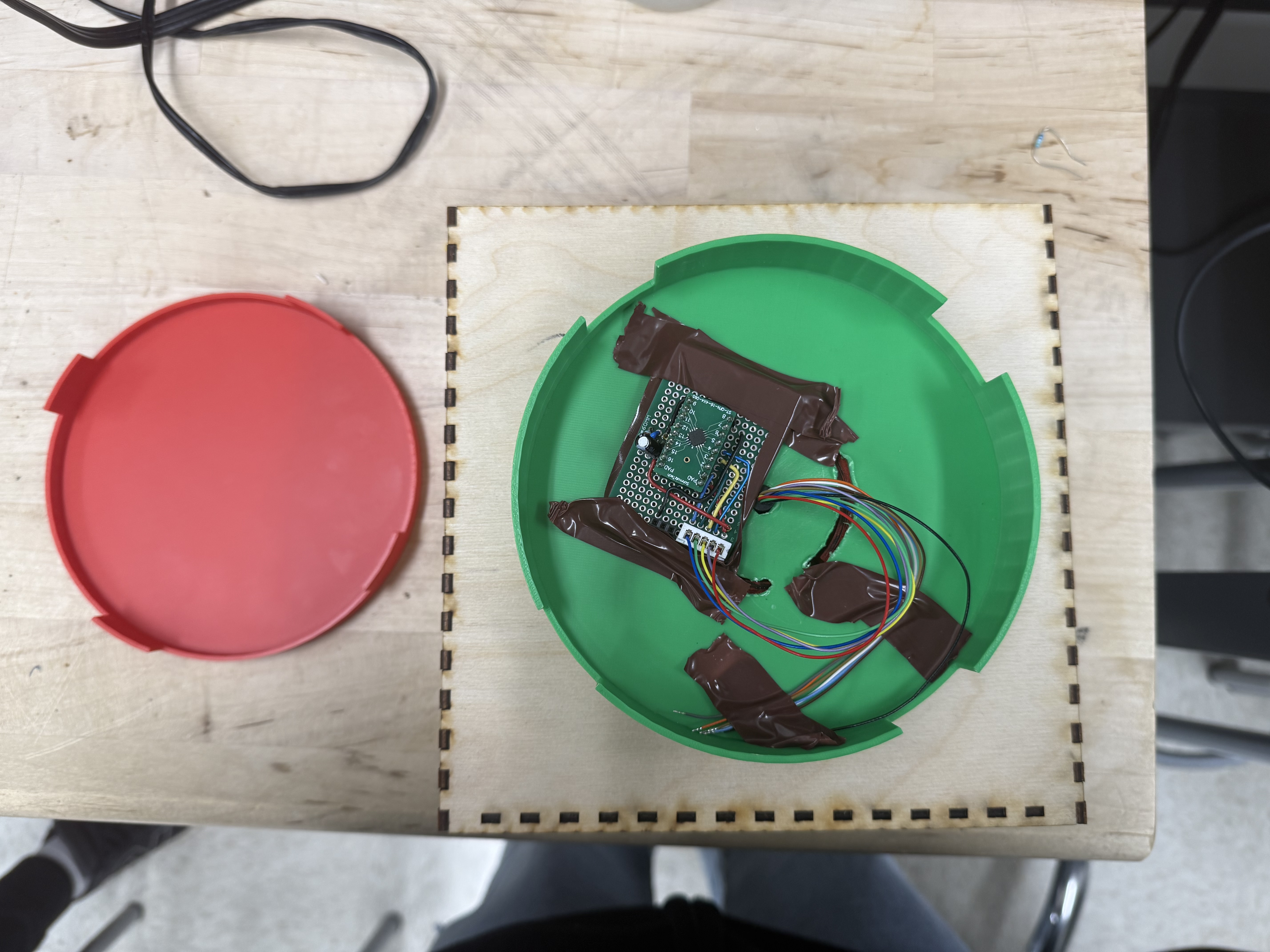 The 3-axis digital gyroscope measures angular rotation around three axes. The gyroscope outputs 16 bit angular rate data (sent as two 8-bit values) over SPI to the MCU. The MCU reads this data and converts it into a corresponding frequency, which can then be sent to the FPGA.